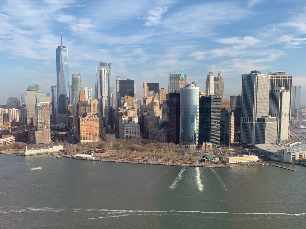 It was a hazy morning when we started, and we could just make out the outline of the Empire State Building through the fog. But all this burned off nicely as we rounded the Statue of Liberty and the lowest part of downtown.