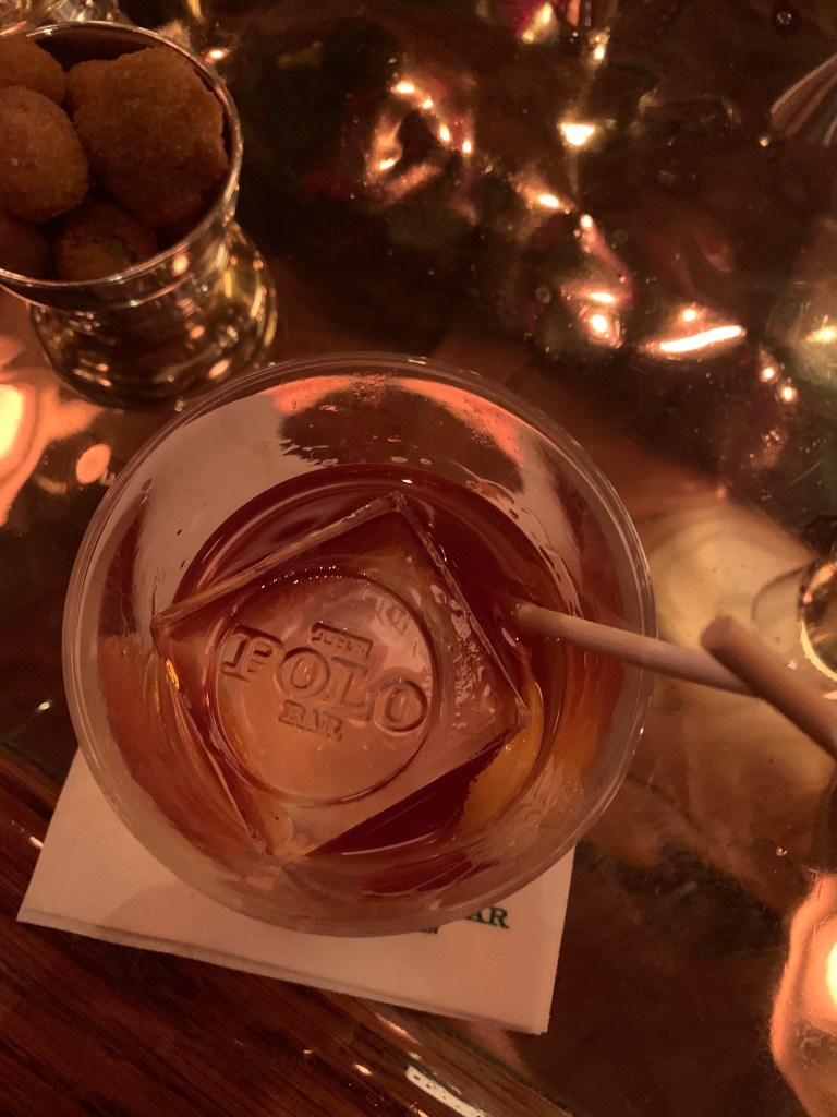 Like the heat-stamped ice cube in my cocktail. (Notice the polo mallet stir stick too)