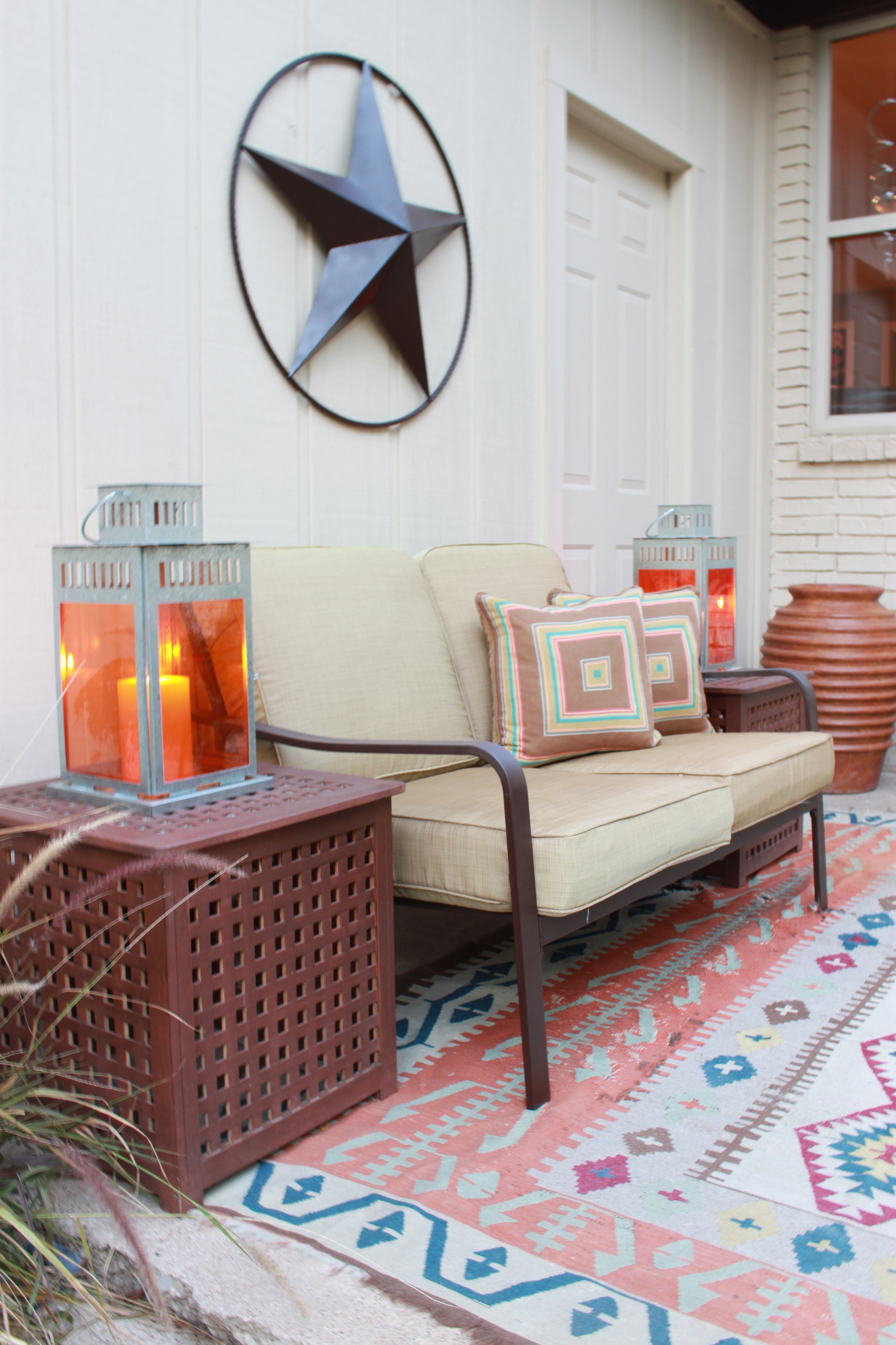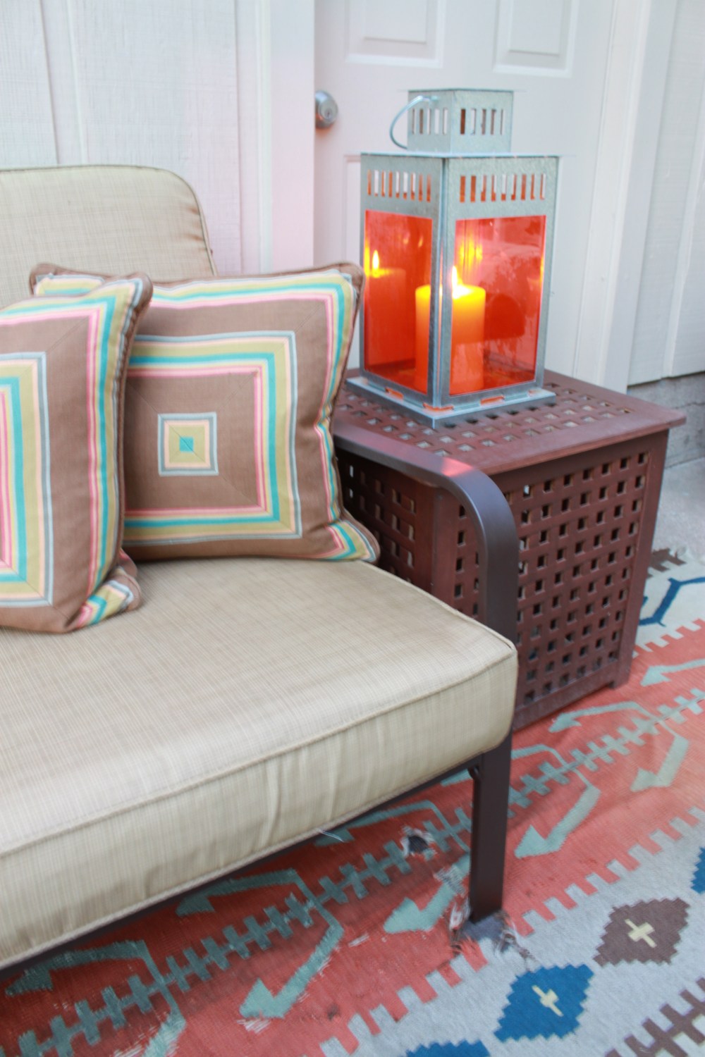 When we were in Puerto Rico, our hotel…the La Concha…had a very swinging bar scene by the pool every night. To create that “swinging” atmosphere the hotel surrounded the pool area with these orange glass cube hurricanes. Simple orange glass boxes with candles. Very modern, very sexxxy. Of course I thought, “I can make those”. And I certainly could…..but maybe, I could make something similar (and slightly cheaper) with the Ikea lanterns we already have.